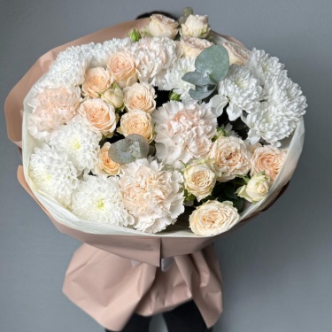 Букет из пионовидных роз и хризантем